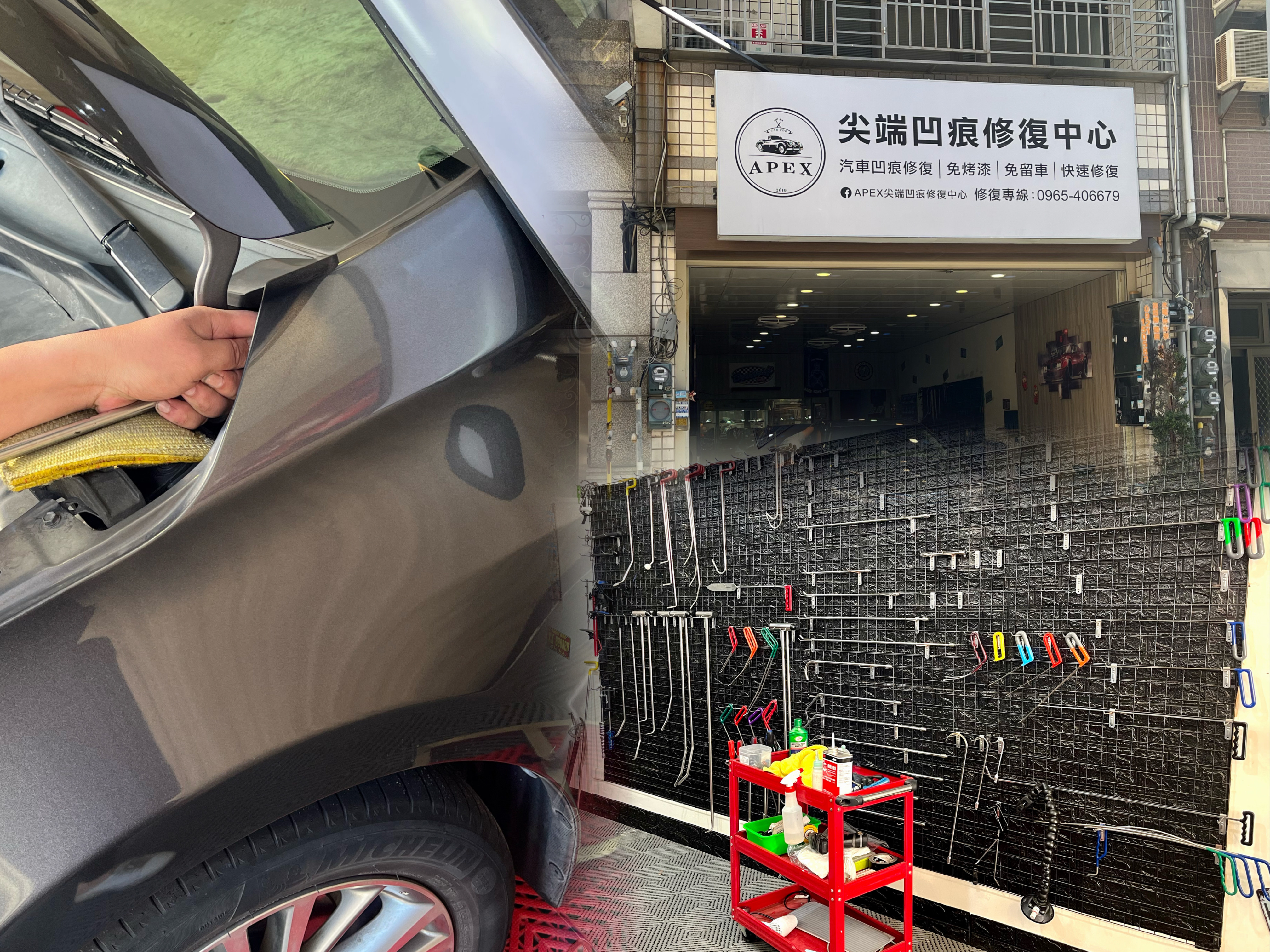 營業項目:汽車凹痕、酒窩快速修復,免烤漆微鈑金