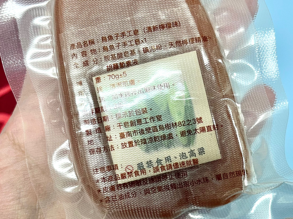 當時看到說明寫「嚴禁食用、泡高粱」,友人滿臉問號問號??仔細看才發現有警示貼紙,烏魚子手工皂榮登我今年最愛的新年禮品第一名!!