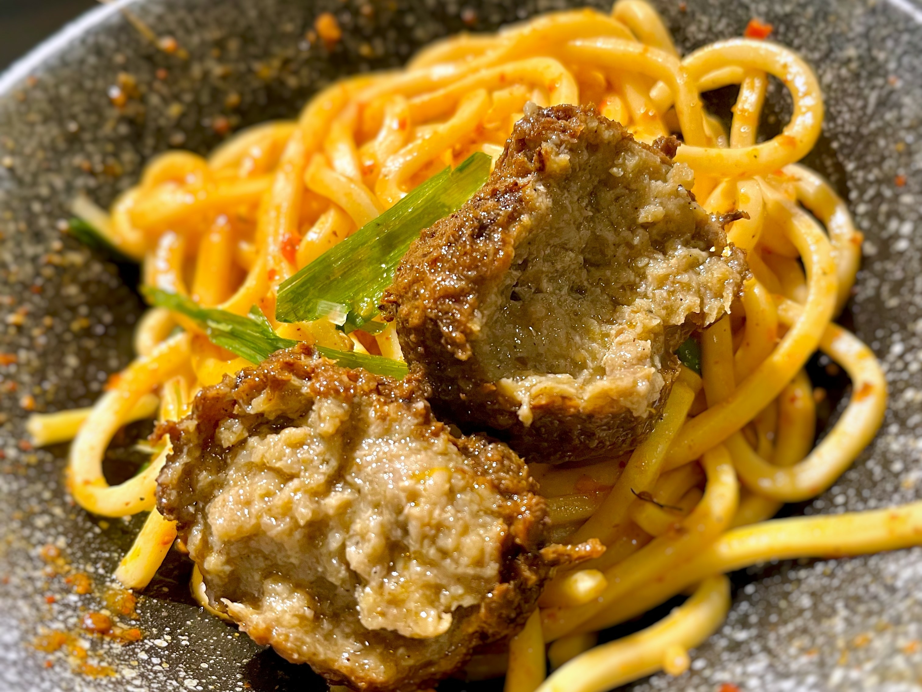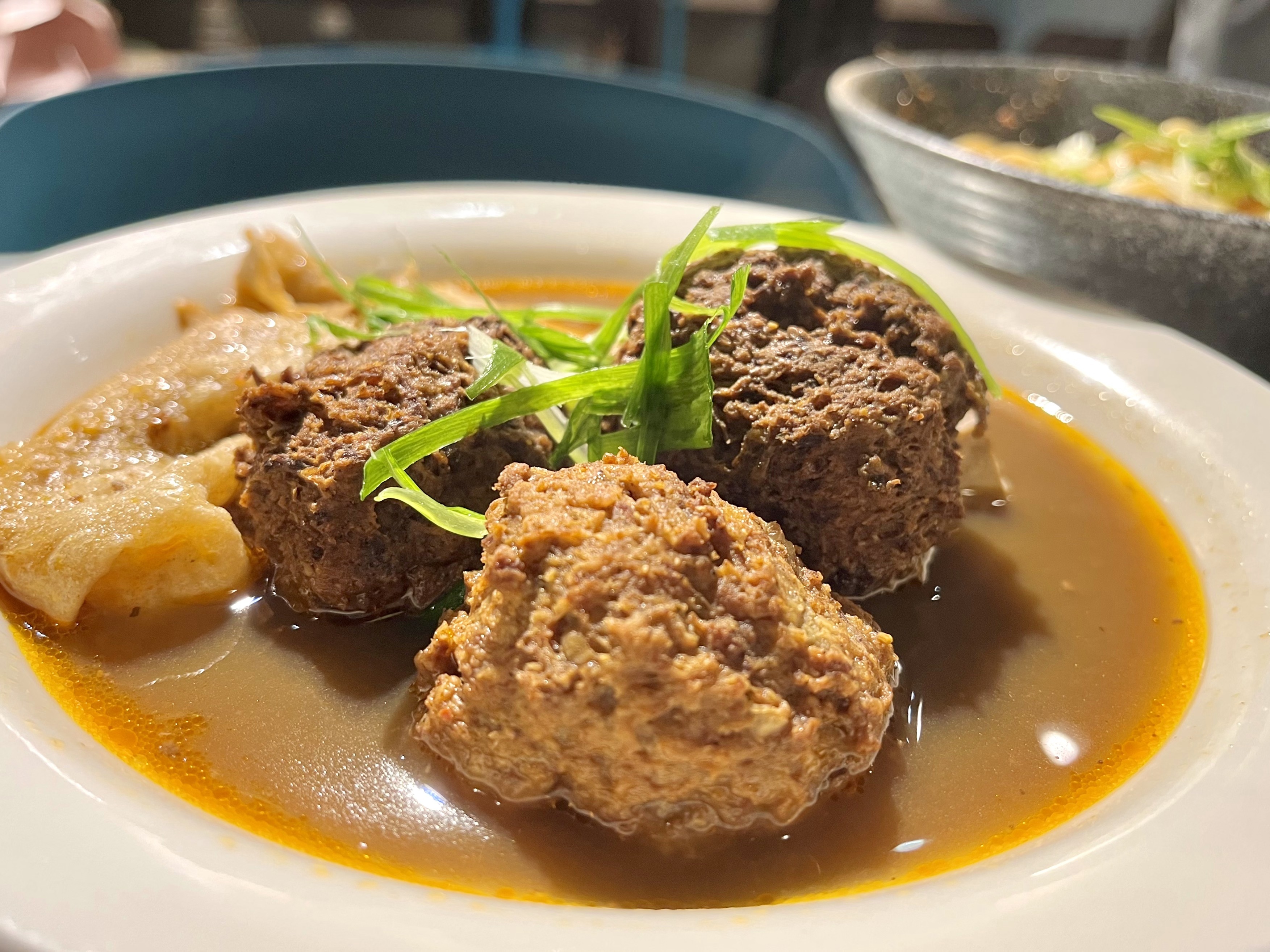 「川丸子」這個名稱聽起來很特別,其實就是獅子頭!!近幾年興起好多雞肉飯店也賣起獅子頭,沒想到搭配麻辣鍋底也很好吃,咬下有爆汁啾西的麻辣湯,板豆腐及豆皮吸飽湯汁表現的可圈可點