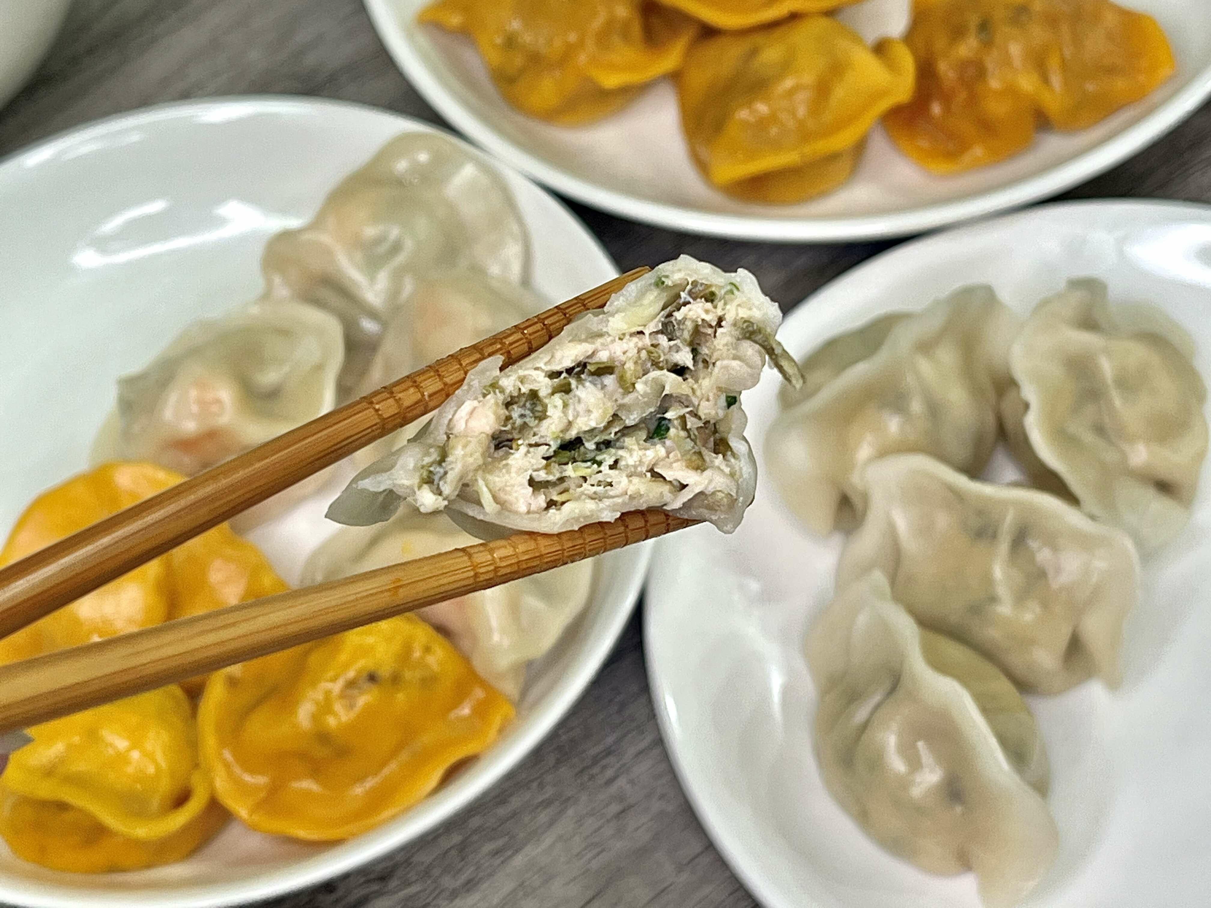 水餃口味中包含大家接受度最高的高麗菜豚肉水餃、韭菜豚肉水餃,其餘的每種口味也各自有它的獨特之處,雞、豬、魚、海鮮、菇類都嚐得到。不僅如此,「饍食 Sense Food」連素食者都有照顧到!