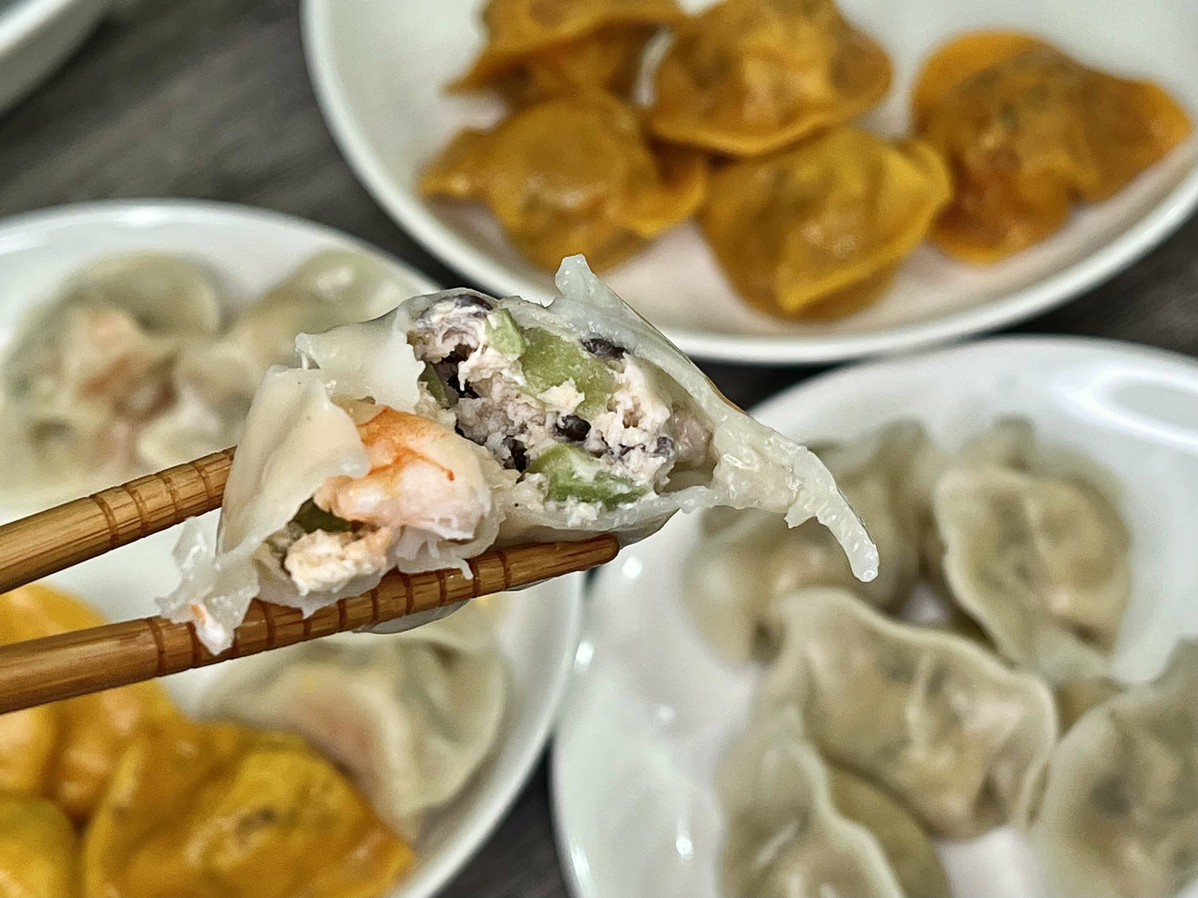 每顆都包有一顆飽滿的蝦子,算是比較鮮甜清淡的口味,也很適合放入湯中或沾醬食用喔!
