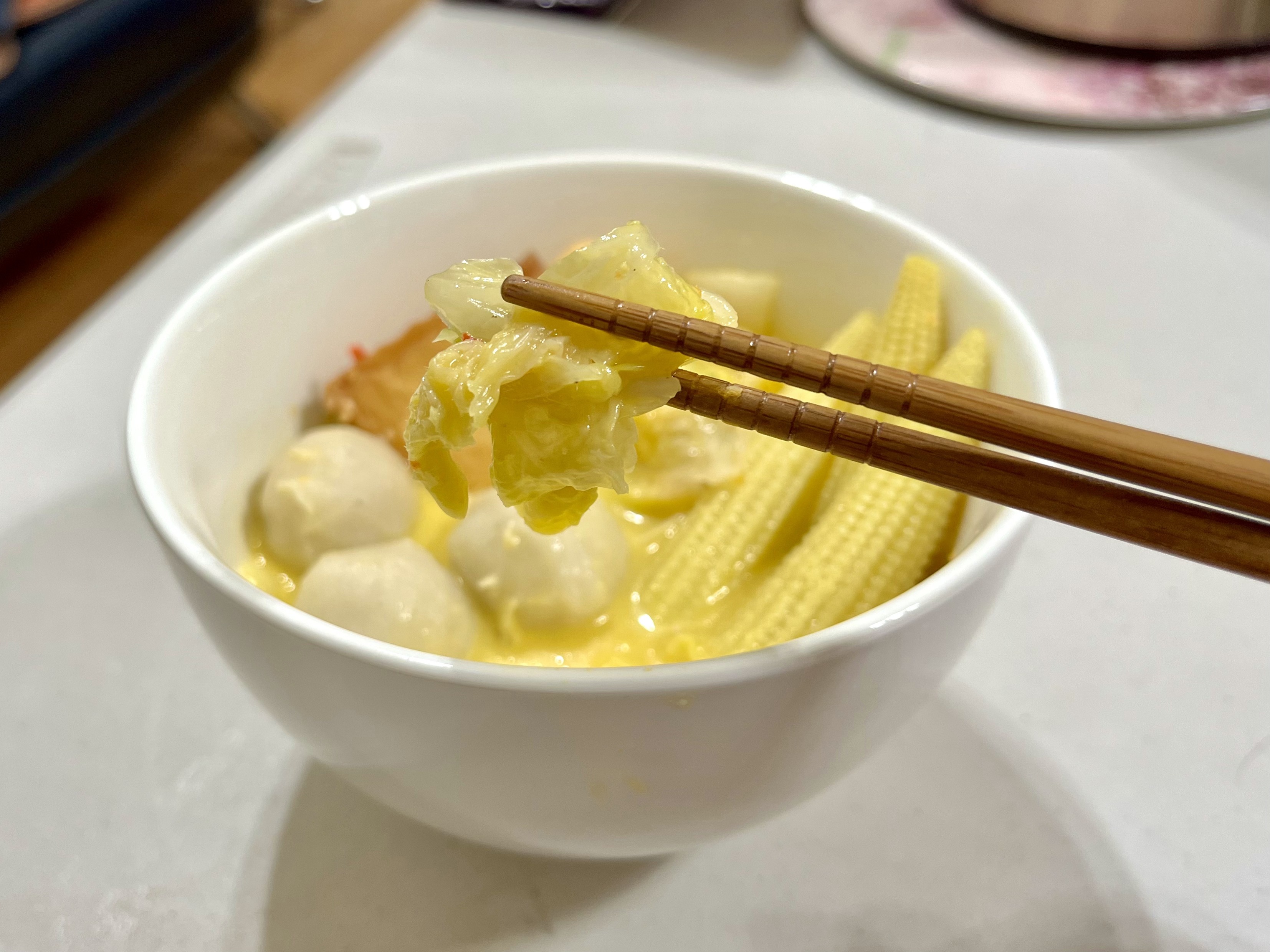黃金泡菜火鍋煮好後,我先盛起來準備開動囉😋