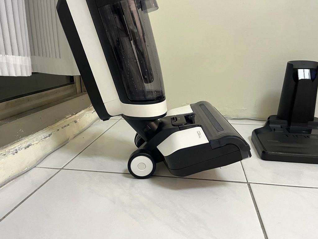 洗地機上的無線設計很便利,不會被侷限在有插頭的環境,也沒有繁雜的線路阻擋,清潔完畢後放回充電底座上充電就可以。